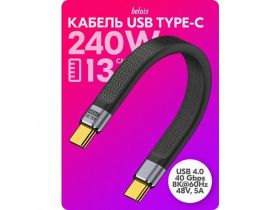 Кабель короткий сверхскоростной TYPE-C Thunderbolt «belais» (40 Gbps, 240W, 8K@60Hz, 48V, 5A, USB 4.0, 13 см, чёрный) #22640 102850605300