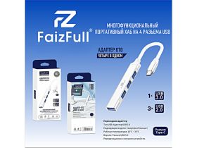 HUB Type-C, переходник на 4 порта USB, white-silver 103525568496
