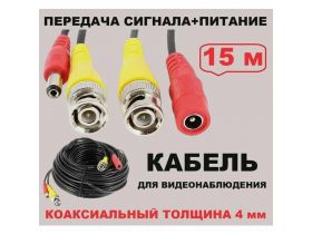 Кабель для видеонаблюдения VC-15 коаксиальный 15 метров толщина 4 мм 103743682671