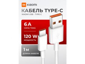 Кабель для быстрой зарядки Xiaomi BHR4915CN 6A, 120 W, Quick Charge, Turbo Type-A/Type-C, белый, 1м 4405058595