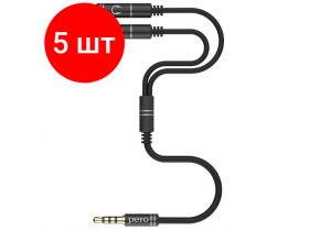 Комплект 5 штук, Разветвитель аудио PERO AD08 PREMIUM AUX SPLITTER MIC + SPEAK, черный 102531183927
