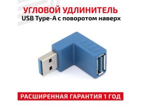 Угловой адаптер-переходник (сетевой адаптер) USB 3.0 Type-A папа-мама для компьютера, ноутбука с поворотом вверх, синий 4382447151