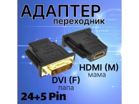 Переходник адаптер dvi i 24+5 (F) папа на hdmi (M) мама, Конвертер HDMI - DVI 102661763743
