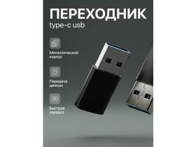 Переходник USB-A(Вход, мама) TYPE-C(Выход, папа), с поддержкой технологии OTG, металлический, черный 103596069915