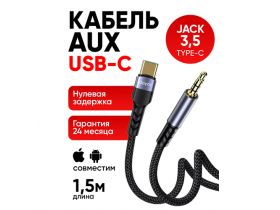 Кабель AUX Type-C в машину с защитой от намотки, 1.5 метра, черный 4295020425