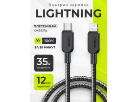 Кабель для зарядки айфона, 1.2 метра, 35W, Type-C-Lightning, провод зарядка для iphone, шнур для быстрой зарядки черный 103813204037