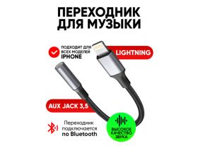 Переходник адаптер Lightning - mini jack 3.5mm (AUX), для iPhone, провод для телефона и для наушников, шнур, черный 103811757212