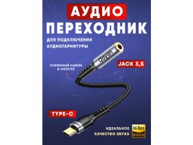 Кабель-переходник (адаптер) Type-C на 3.5 jack, тканевая оплетка / переходник для наушников c Type-C на AUX 4438324407