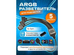 ARGB разветвитель для вентиляторов, кабель на 5 разъемов/выходов 3PIN 5V, 30 см (чёрный) 103229261523