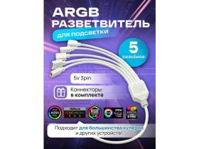 ARGB разветвитель для вентиляторов, кабель на 5 разъемов/выходов 3PIN 5V, 30 см (белый) 103229261520