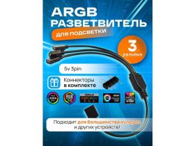 ARGB разветвитель для вентиляторов, кабель на 3 разъема/выхода 3PIN 5V, 30 см (чёрный) 103229261524