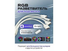 RGB разветвитель для вентиляторов, кабель на 4 разъема/выхода 4PIN 12V, 30 см (белый) 103271973704