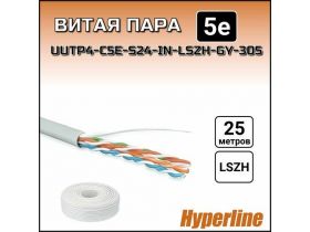 Кабель витая пара 25 метров Hyperline (UUTP4-C5E-S24-IN-LSZH-GY-305) UTP 4 пары внутренний 102673459170