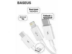 Дата-кабель BASEUS Superior Series USB-A->MFI+A+C с функцией быстрой зарядки 3.5A 1м белый 103694466509