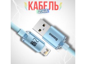 Кабель для быстрой зарядки Baseus Crystal Shine Series USB на iPhone 2.4A , 2 м Голубой (CAJY001203) 101827919202