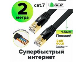 Патч-корд плоский cat.7 FTP 10 Гбит/с RJ45 LAN профессиональный компьютерный кабель для интернета медный экранированные коннекторы 24K GOLD (GCR-L304) черный 2.0м 4448181727