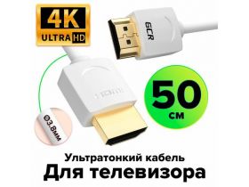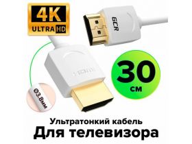 Ультратонкий короткий видео-кабель HDMI 2.0 GCR 30см для Smart TV белый 4320431503