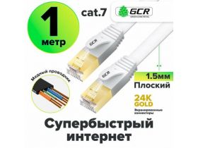 Провод для интернета плоский cat.7 FTP 10 Гбит/с RJ45 LAN экранированные коннекторы 24K GOLD (GCR-L304) белый 1.0м 4325553819