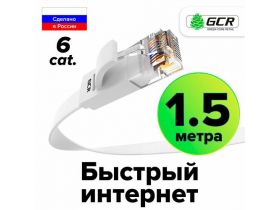 Патч-корд PROF плоский UTP cat.6 10 Гбит/с RJ45 LAN для интернета контакты 24K GOLD (GCR-LNC62) белый 1.5м 102928271548