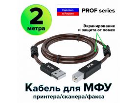 Провод PROF USB 2.0 AM / BM с ферритовыми кольцами для подключения сканера (GCR-UPC10) черный; прозрачный 2.0м 101840819044