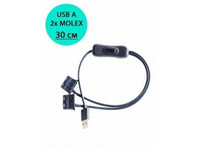 Переходник USB A - 2х MOLEX (2 контакта) с выключателем 30см 4622588756
