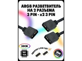 ARGB Разветвитель для подсветки ARGB 3PIN 5V 1в2 / 30 см / Black (черный) 4403830519