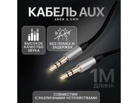 Аудио кабель AUX 3,5mm jack - 3,5mm jack / 1m серебристо-черный 103705257047