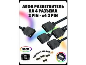 ARGB Разветвитель для подсветки ARGB 3PIN 5V 1в4 / 30 см / Black (черный) 4403830513