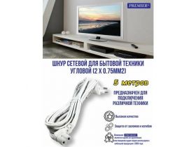 Шнур сетевой для бытовой техники "8" с угловыми разъемами с кабелем 2x0.75мм2 5 метра 103537413463