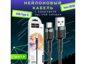 Нейлоновый кабель с поддержкой быстрой зарядки USB/Type-C hoco DU46, 1 метр, 3.0А, черный 102063310742