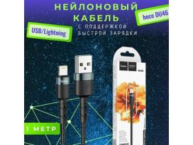 Нейлоновый кабель с поддержкой быстрой зарядки USB/Lightning hoco DU46, 1 метр, 2.4А, черный 102063231015