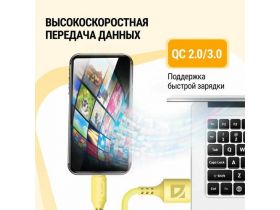 USB кабель Defender F207 Micro Желтый, 1м, 2.4А, силикон, пакет 101815764693
