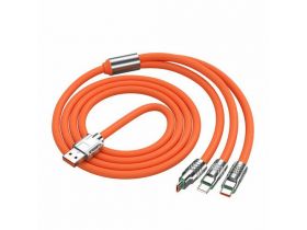 Кабель для быстрой зарядки USB 3-в-1, Type-C+Lightning+microUSB, 2 метра 6А 120Вт оранжевый 102309231512