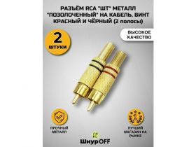 Разъем RCA штекер металл "позолоченный" на кабель, под винт, красный и черный( 2 штуки) 102350566816