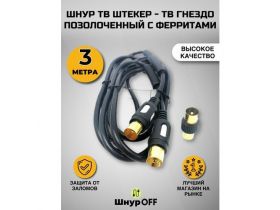 Шнур ТВ штекер - ТВ гнездо позолоченный с ферритами (3 метра) 102350569833