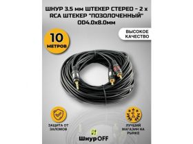 Шнур 3.5 мм штекер стерео - 2 x RCA штекер "позолоченный" OD4.0x8.0мм 10.0 метров. 102350565317