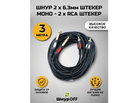 Шнур 2 х 6.3мм штекер моно - 2 x RCA штекер (длина 3.0 метра) 102350566858