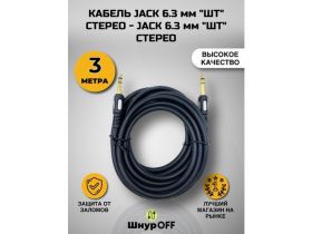 Кабель Jack 6.3 мм "шт" стерео - Jack 6.3 мм "шт" стерео (3 метров) 102350566801