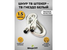 Шнур ТВ штекер - ТВ гнездо белый (1.5 метра) 102350799705