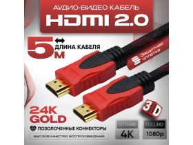 Кабель аудио видео HDMI М-М, 5 м, 1080 FullHD 4K UltraHD провод HDMI, Кабель hdmi 2.0 цифровой, черно-красный 102538014418