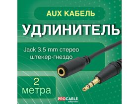 Jack 3.5 mm штекер-гнездо 2 м. Шнур-удлинитель для наушников, Jack 3.5 mm стерео штекер-гнездо 2 метра 102953282037