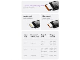 Универсальный кабель для зарядки 3 штекера USB Type-C, Lightning для устройств Apple и micro USB Фиолетовый CAMJ010205 101830215402