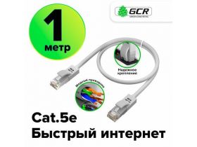 Патч-корд UTP cat.5e 1 Гбит/с RJ45 LAN CCA компьютерный кабель для интернета контакты 24K GOLD (GCR-LNC500) серый 1.0м 102623530463