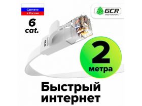 Провод для интернета PROF плоский UTP cat.6 10 Гбит/с RJ45 LAN компьютерный кабель для интернета медный контакты 24K GOLD (GCR-LNC62) белый 2.0м 101804029261