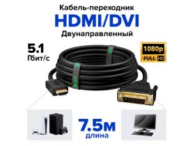 GCR Кабель 7.5m HDMI-DVI черный, OD8.0mm, 28 AWG, позолоченные контакты, 19M / 25M Dual Link, тройной экран 100885557756