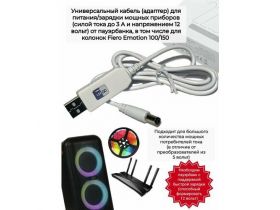 Кабель зарядки (питания) 12 вольт от пауэрбанка/зарядных устройств с поддержкой QC2.0/3.0 (адаптер USB - DC 5,5*2,5(2,1), 3А), в т. ч. для Fiero Emotion150 (100) - белый 102529714839