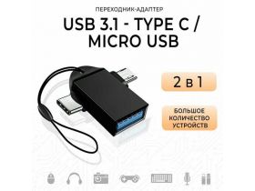 Адаптер переходник USB 3.1 - Type C / Micro USB - для передачи данных, подключения устройств и зарядки черный 103816037457