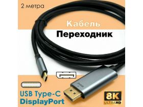 Кабель USB Type-C to DisplayPort 1.4 Black Whip 2 метра 8K, 5K, 4K, 240 Hz, 165 Hz, 144 Hz, 2 метра 103091872838