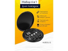 Набор 6 в 1: переходники для телефона (USB, Type-C, Lightning, micro USB), кабель, хранение СИМ, футляр / черный 101766531897