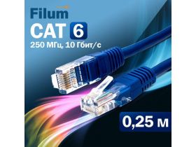Кабель патч-корд U/UTP 6 кат. 0.25м Filum FL-U6-0.25M-BL 26AWG(7x0.16 мм), омедненный алюминий (CCA), PVC, синий 101740893629